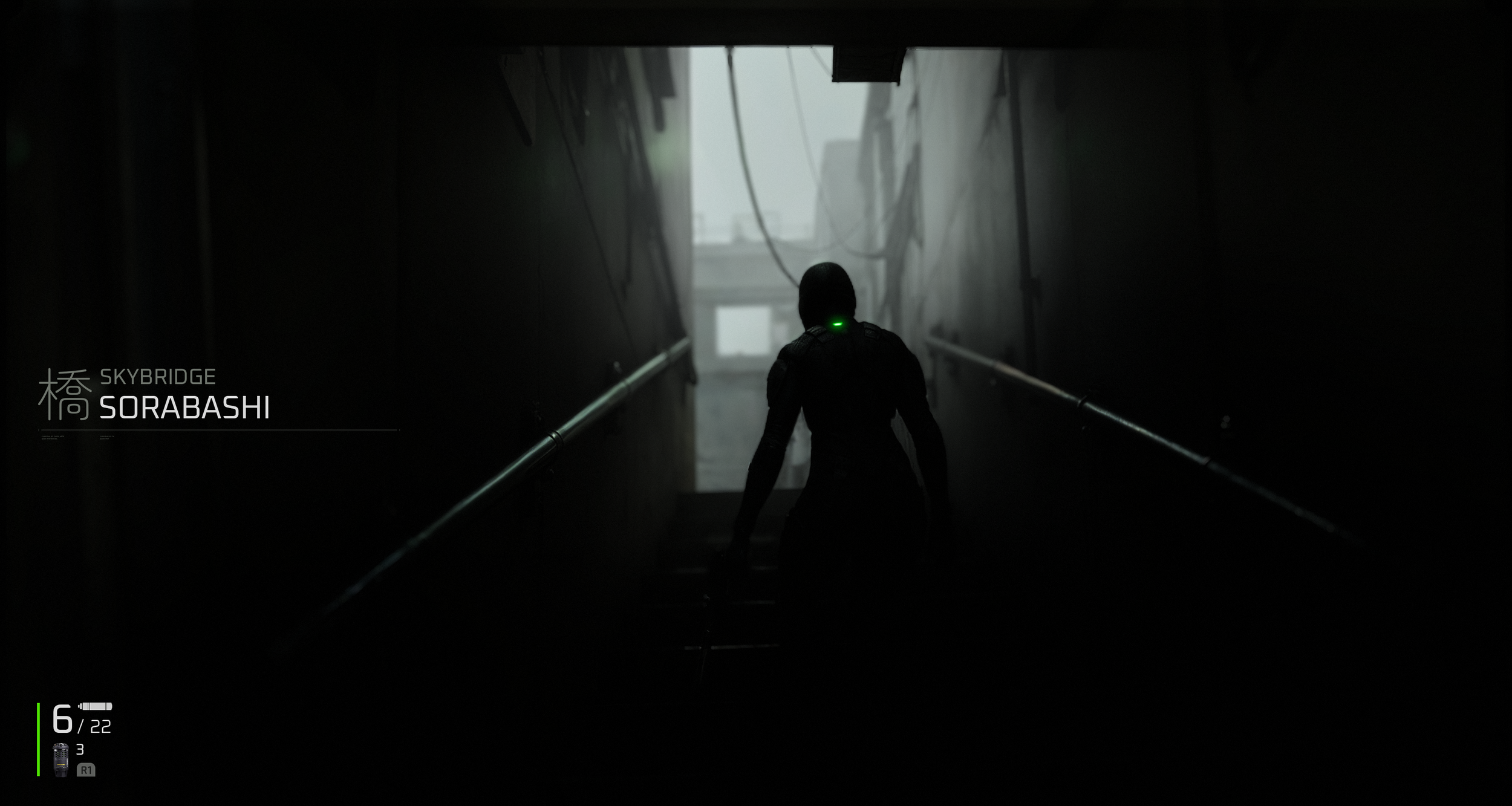 Instead of relying on a non-diegetic HUD to indicate visibility, the game communicates stealth directly through light and shadow. When Rei is fully concealed, she truly disappears into darkness.