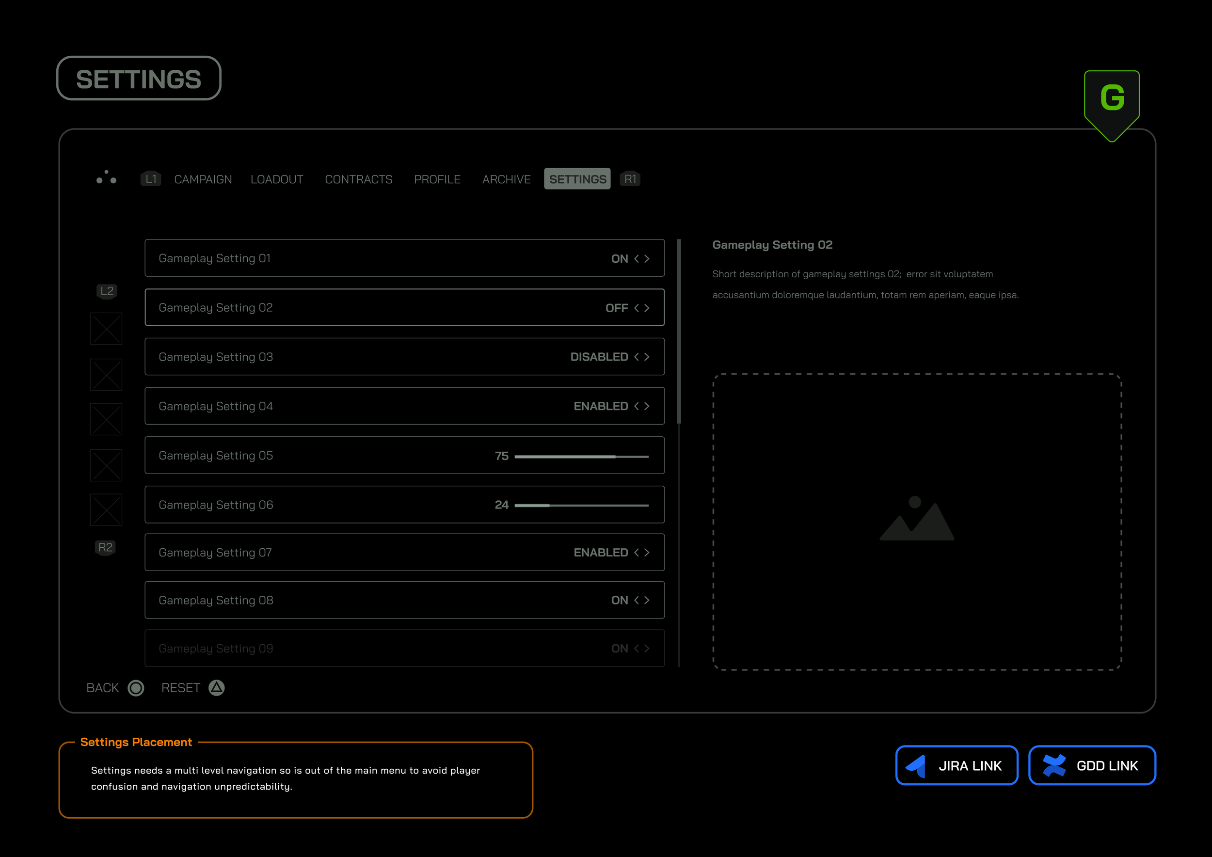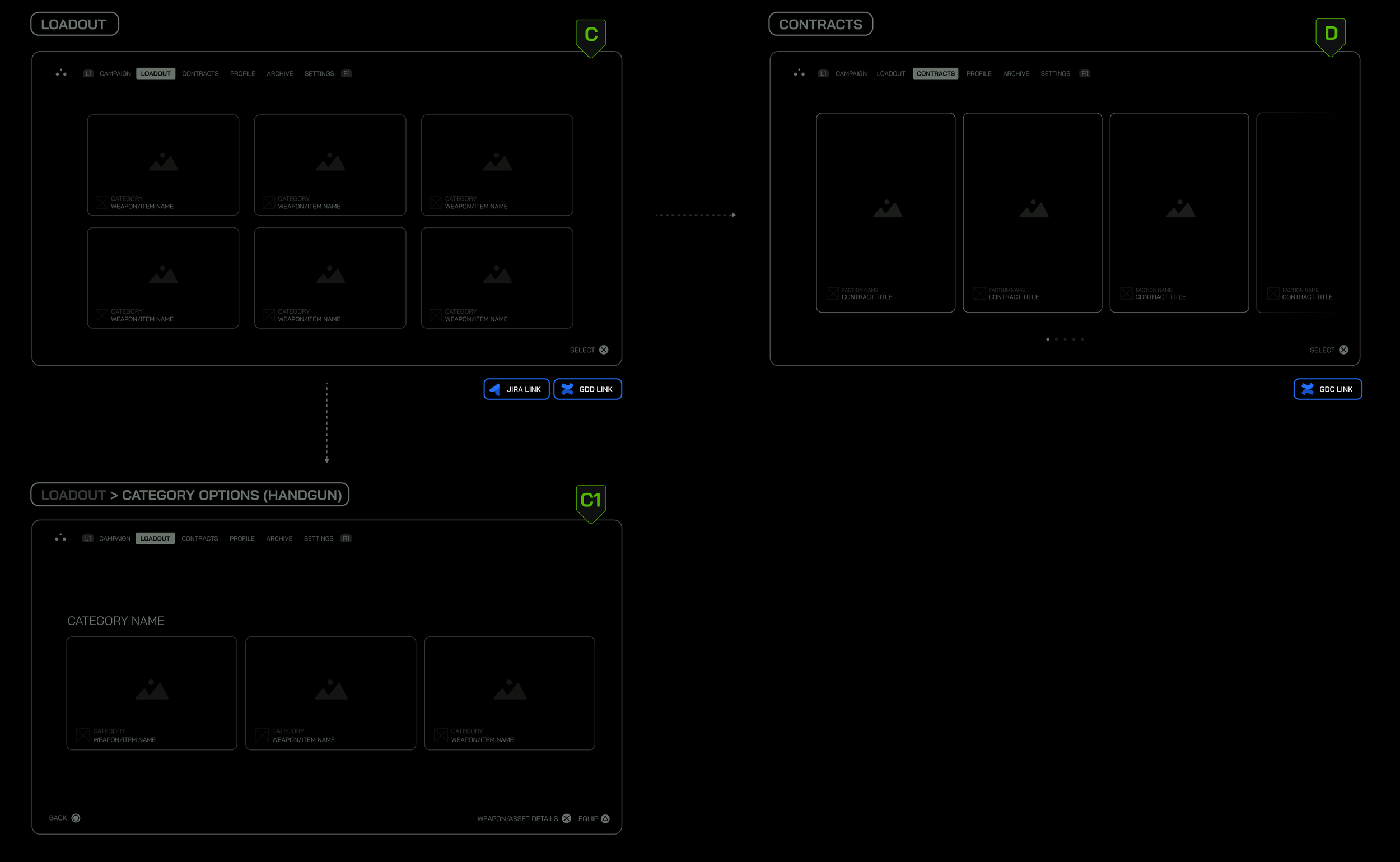 Visually, the project deliberately moves away from early 2000s techno-militaristic aesthetics in favor of cleaner interface design and structure, reduced visual noise and high-contrast readability (reenforcing the concept of light vs. shadow)